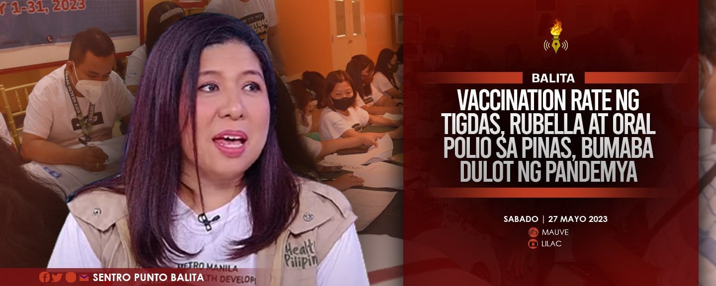 Ibinahagi ni Department of Health (DOH) Assistant Regional Director Dr. Pretchell Tolentino na bumaba ang vaccination rate para sa tigdas, rubella at oral polio sa mga bata sa Pilipinas dahil sa dumaang pandemya.