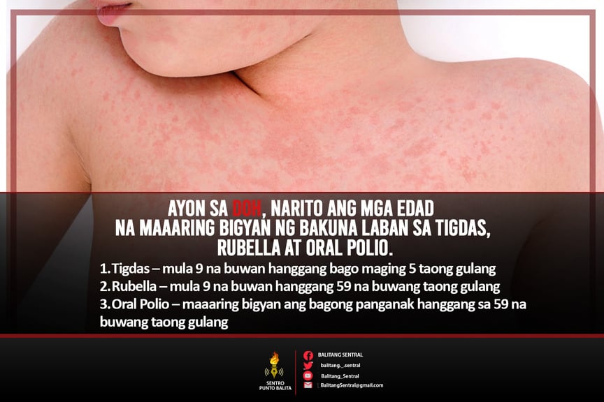 Alinsunod rito ay naglabas ang DOH ng supplemental immunization kung saan ang pangunahing layunin nito ay maunang mabakunahan ang mga batang sakop sa 95% na nangangailangan ng bakuna kontra tigdas, rubella at oral polio.
